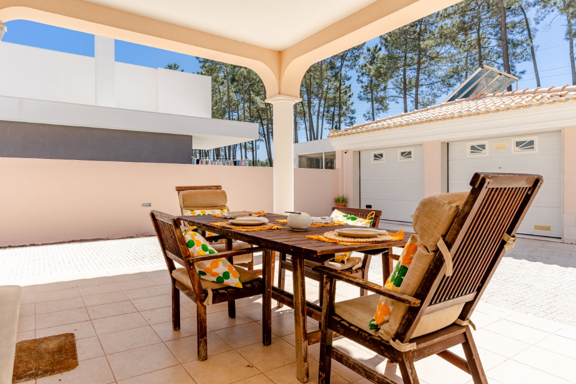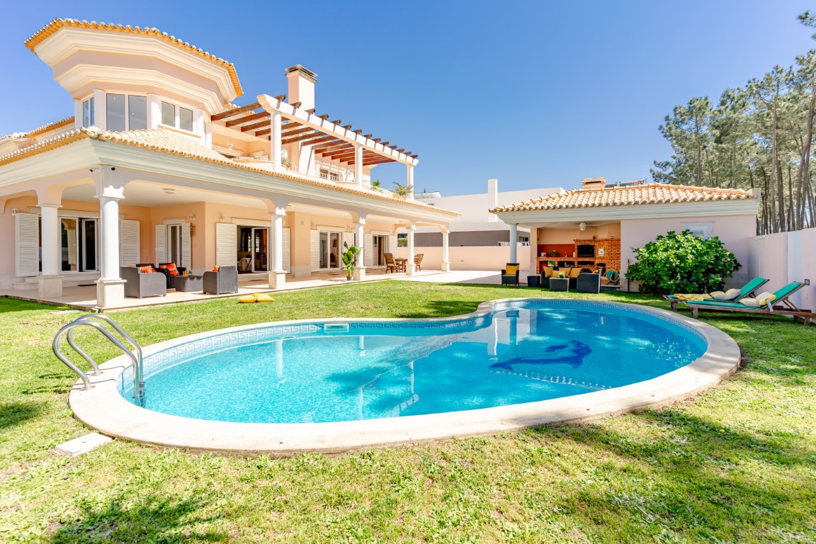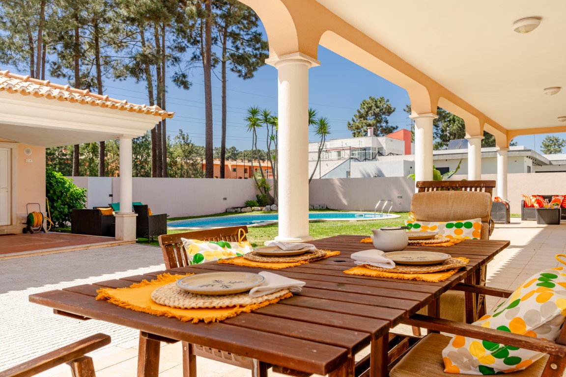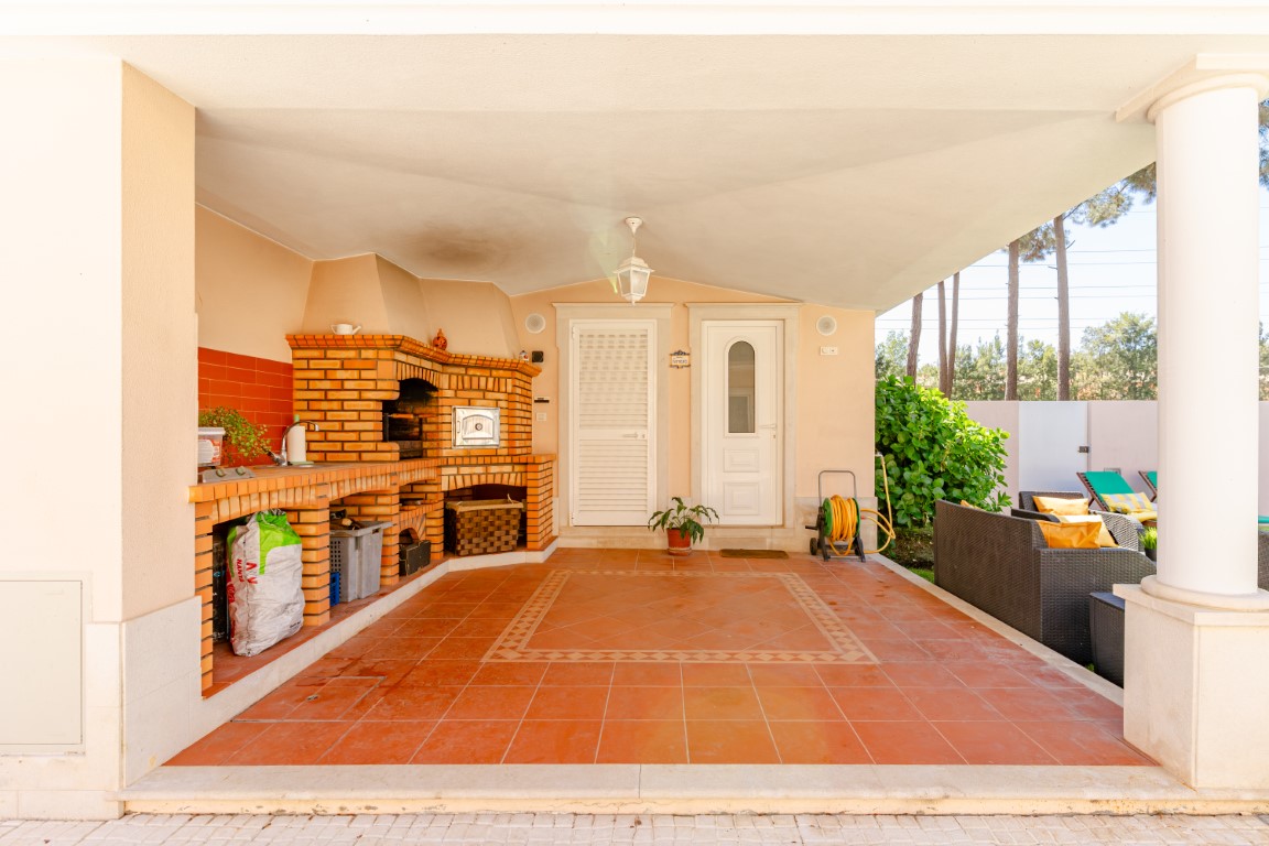 Uma piscina deslumbrante cercada por belos jardins paisagísticos, um anexo equipado com churrasqueira e forno a lenha, além de amplos alpendres e varandas, oferecem espaços perfeitos para desfrutar do clima ensolarado e do estilo de vida ao ar livre. Com balneário de apoio.Instalações de lazer e bem-estar